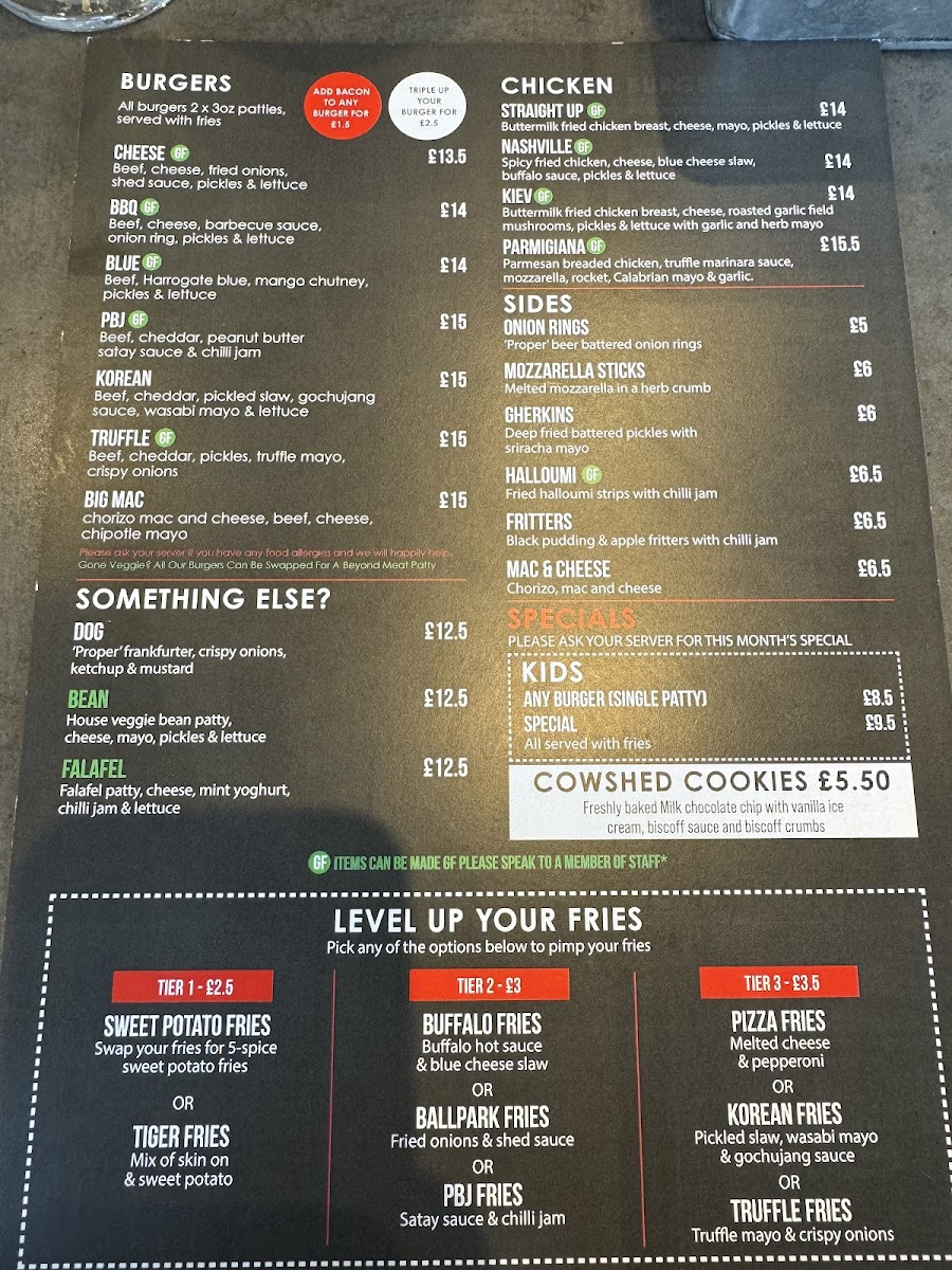 Welcome to Cowshed Burgers, a gem nestled in the heart of Scarborough, at 94-100 St Thomas St. Renowned for its mouth-watering, handcrafted burgers, this lively eatery truly captures the spirit of a classic burger joint. The menu offers a delightful range of options, including cult favorites like The Faltliner and I Am Mclovin, each boasting bold flavors that promise satisfaction in every bite.